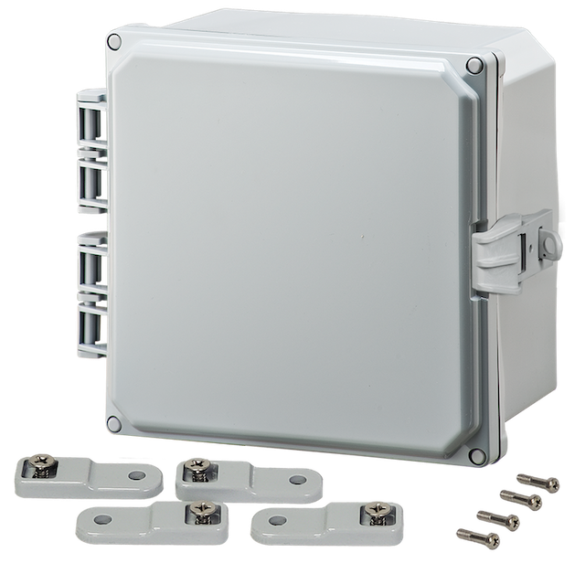Clear replacement cover for 8" x 8" Premium Enclosure with standard hinge. Gasket installed and cover screw kit included.