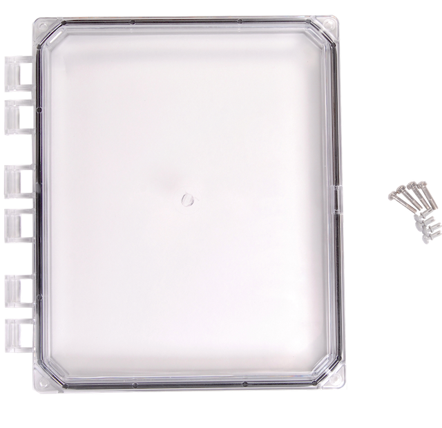 Clear replacement cover for 16″ x 14″ Premium Enclosure with standard hinge. Gasket installed and cover screw kit included.