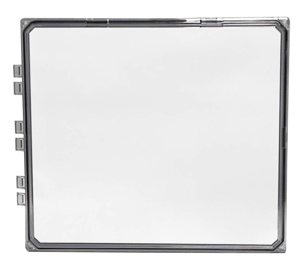 Clear replacement cover for 16″ x 18″ Premium Enclosure with standard hinge. Gasket installed and cover screw kit included.