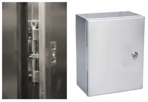 Integra’s stainless steel enclosures feature a 0.34” return flange to create a wide sealing face for the polyurethane gasket and a drainage channel to direct water away from the enclosure opening. Additionally, features like concealed hinges, smooth edges and flush door latches create a seamless enclosure surface with minimal opportunities for bacteria to hide.